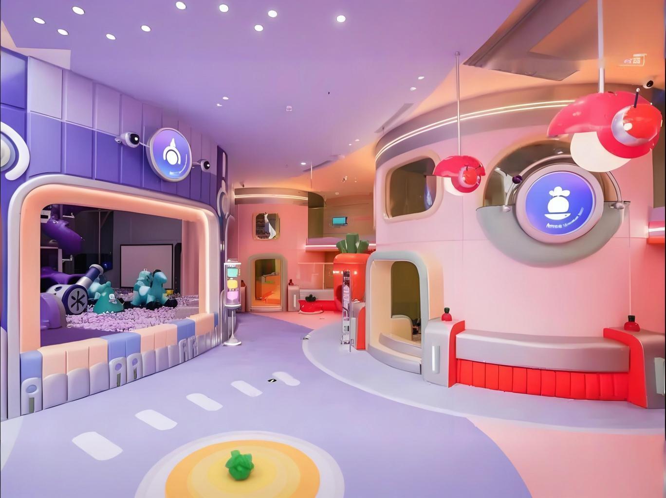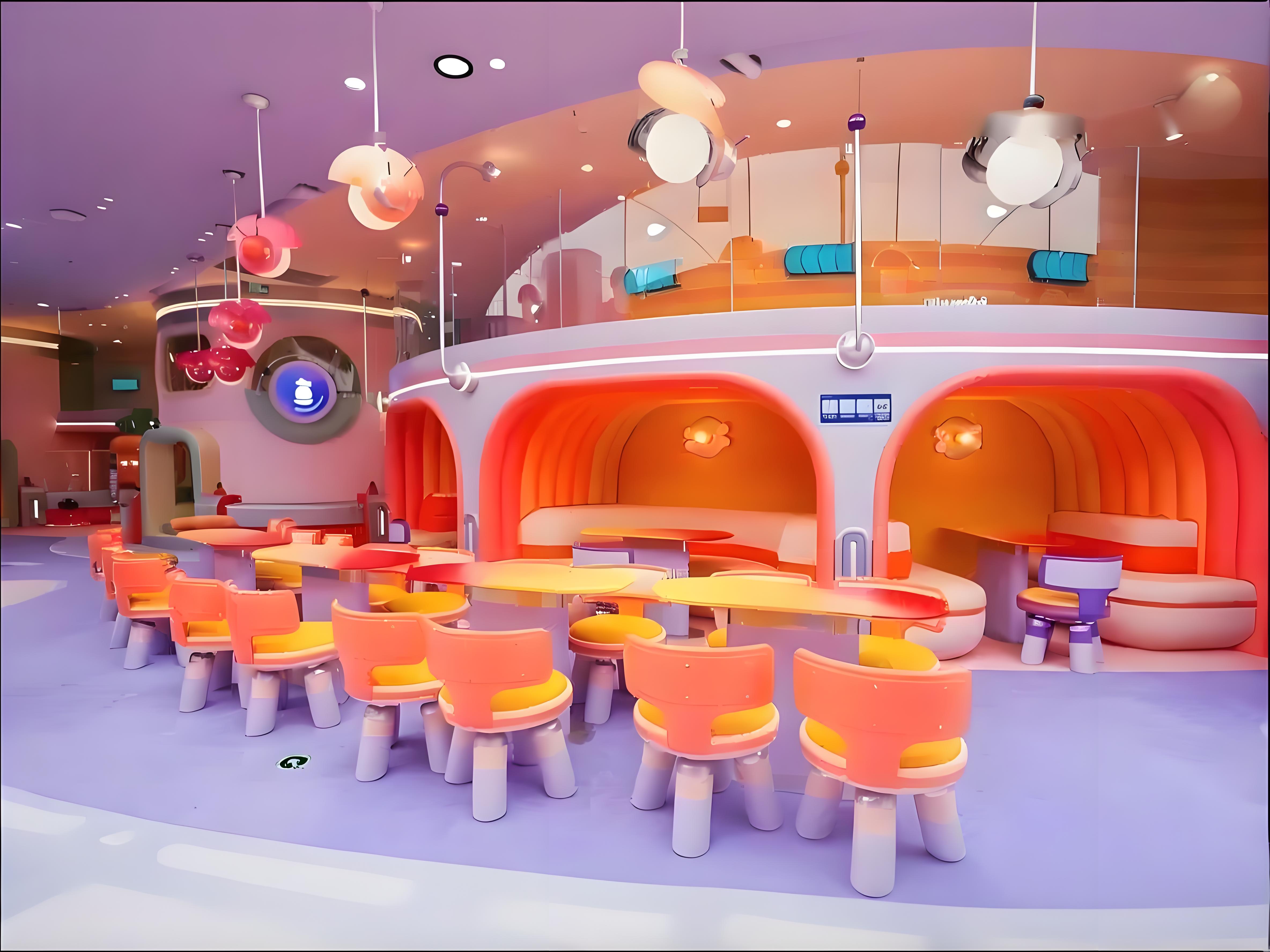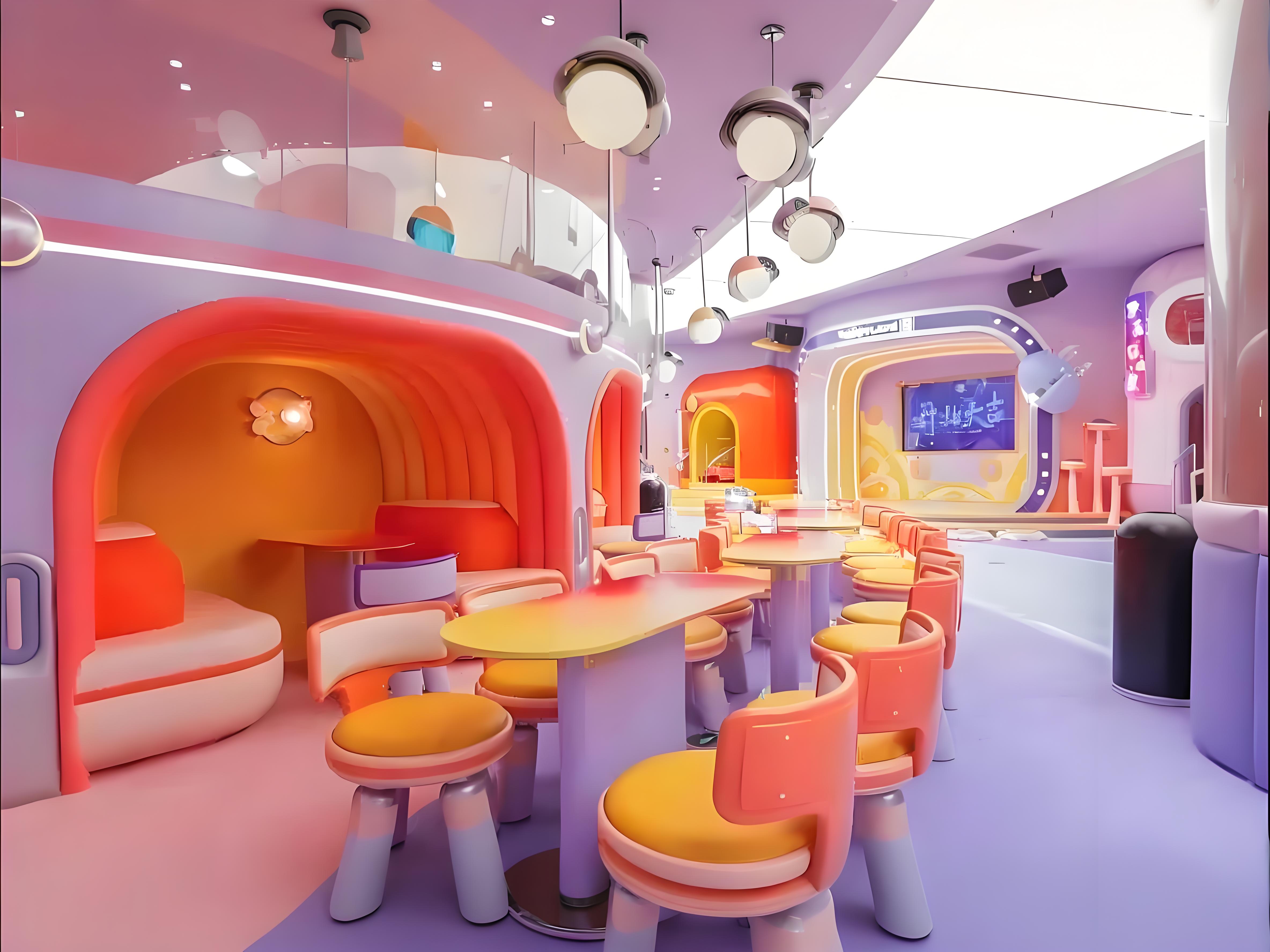 空间设计‌:2500㎡挑高空间,莫兰迪色系与星际主题结合,营造梦幻视觉效果。