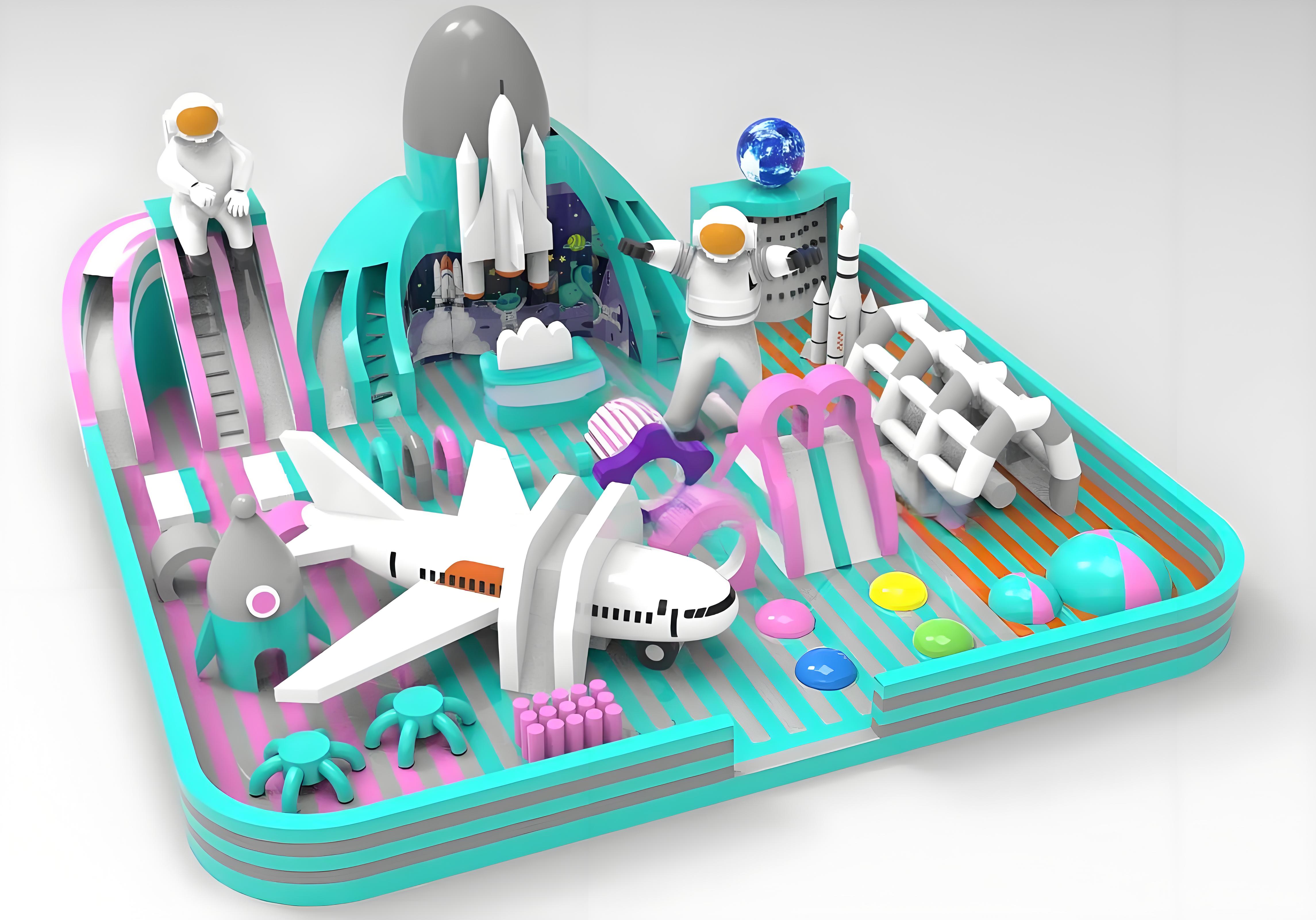 可快速拆装的卡通造型充气堡,占地15-20㎡,支持钻爬滑跳多元玩法,抖音打卡视频播放量破亿案例已验证传播力